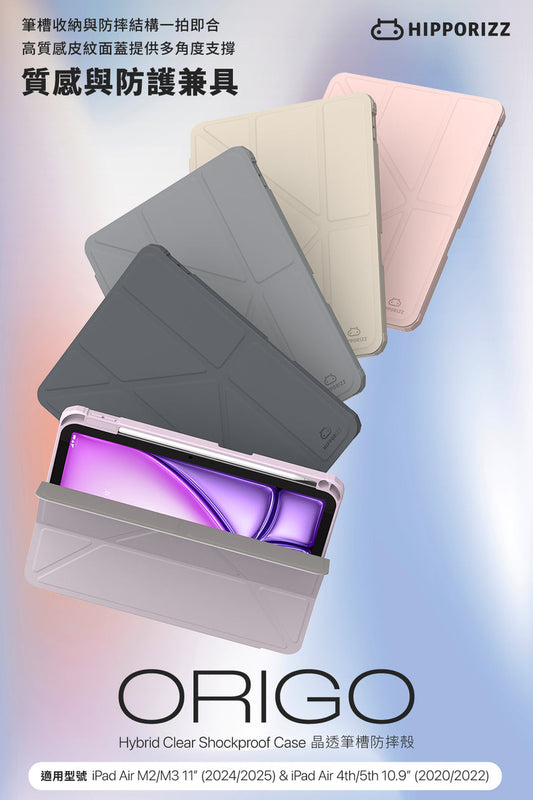 Origo晶透皮紋 筆槽保護殼 iPad Air M2/M3 11吋 / 4th-7th 10.9吋